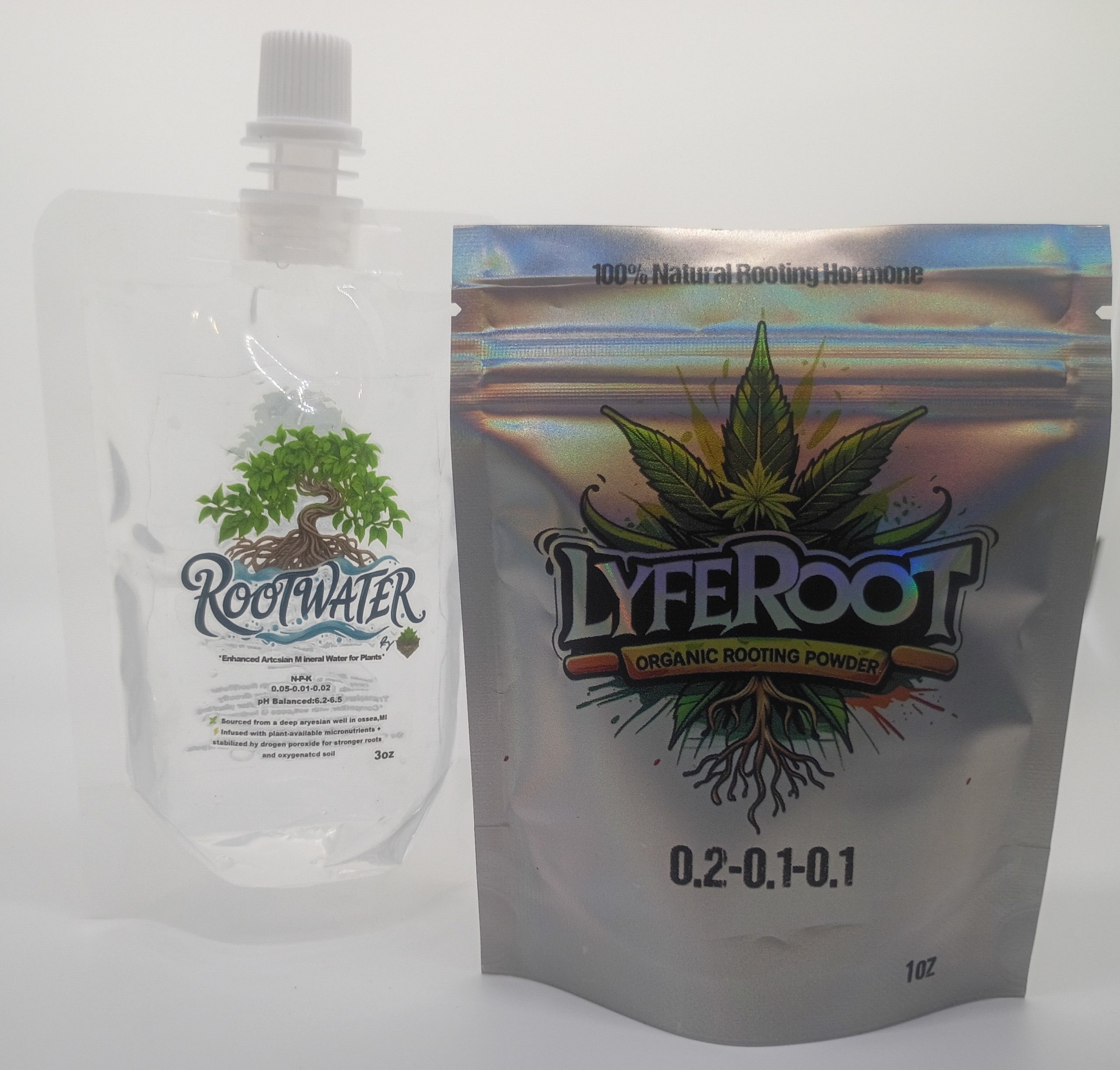 Rooted In Success Bundle – The Ultimate Germination Hack $12.50 Jumpstart your grow with this powerful duo: 🌱 1oz LyfeRoot Organic Rooting Powder to stimulate fast, healthy root development 💧 3.5oz RootWater – mineral-enhanced artesian well water with hydrogen peroxide for oxygen-rich, pathogen-resistant rooting Perfect for germination, cloning, and reducing transplant shock. Grow stronger, faster,…